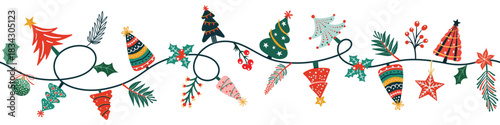 Fototapeta premium Seamless pattern border for Christmas and New Year festival with cute garland...