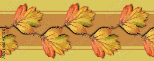 Fototapeta premium Seamless pattern, border, Yellow autumn leaves on orange striped background