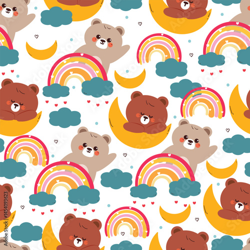 Fototapeta premium seamless pattern cute cartoon bear with sky element. cute pattern for...