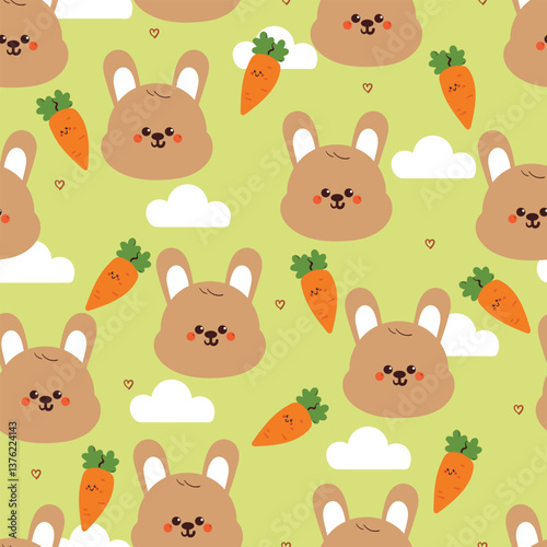 Obraz premium seamless pattern cute cartoon bunny with carrot and white clouds. cute easter...