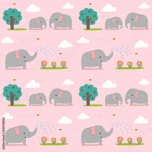 © anchisa, Fototapeta premium Seamless pattern cute elephan watering a flower.