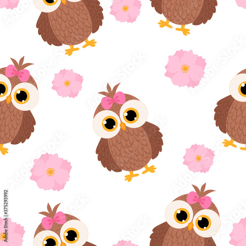 Fototapeta premium Seamless pattern cute owl vector illustration
