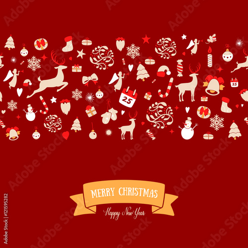 Fototapeta premium Seamless pattern design. Merry Christmas card decoration. Happy