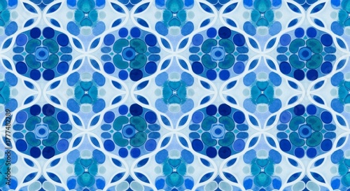 © Bias, Fototapeta premium Seamless pattern dominated by cool blue tones features Moroccan-style trellis shapes creating a calming and cool continuous tiling background. Design and Abstract concept