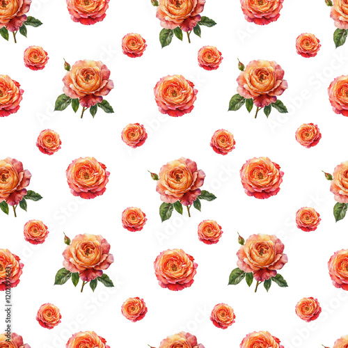 © Ellivelli, Fototapeta premium Seamless pattern featuring an English rose with a stem and leaves