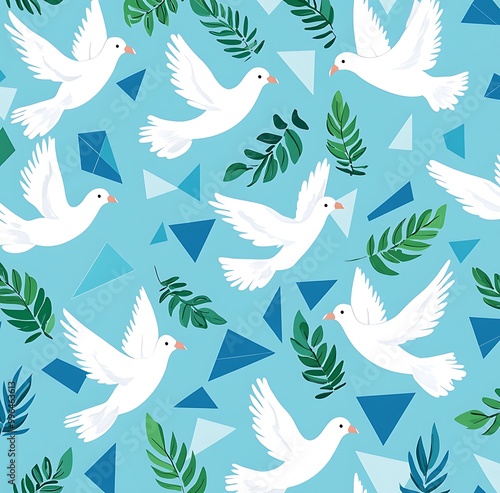 © Tanish, Obraz premium Seamless pattern featuring white doves