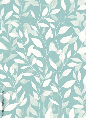 © kkkiim graphic, Naklejka premium Seamless pattern featuring white leaves on a pale mint background