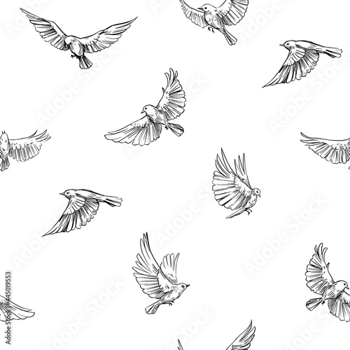 Fototapeta premium Seamless pattern, flying birds. Vector outlines