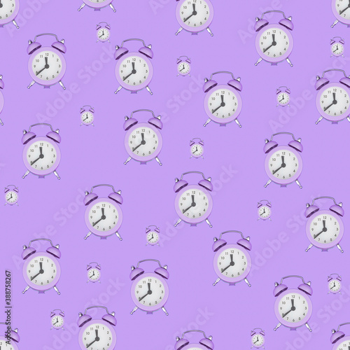 Obraz premium Seamless pattern from alarm clocks. Antique alarm clocks. Top view.