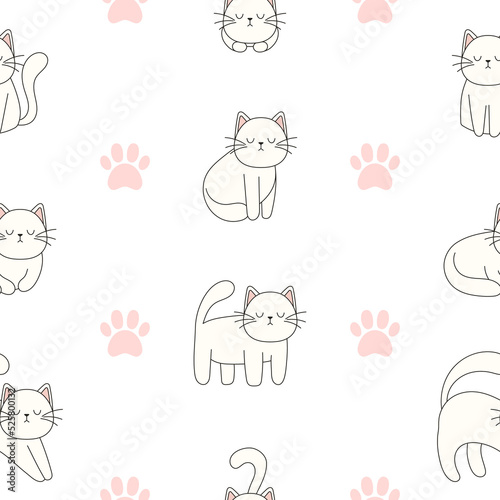 Obraz premium Seamless pattern hand drawn cute cats. Perfect for scrapbooking, greeting...
