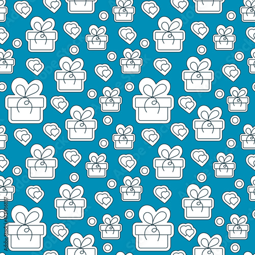 Obraz premium Seamless pattern, Hand drawn gift bix. Blue and white vector background