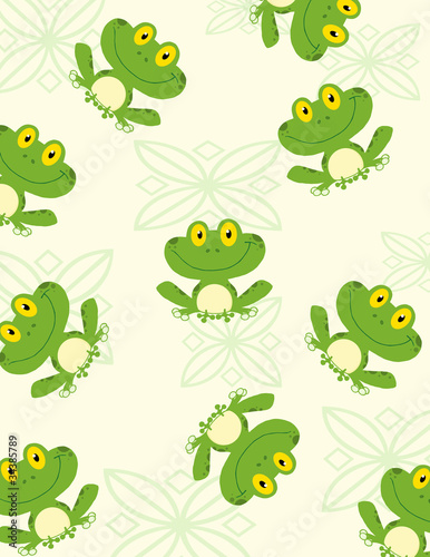 © HitToon.com, Naklejka premium Seamless Pattern Happy Frog