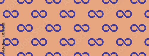 Obraz premium Seamless pattern. Infinity sign is blue, isolated on red orange background....