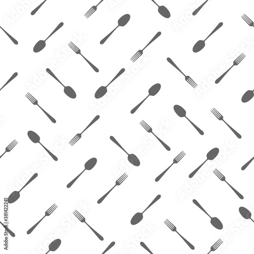 © Віталій Баріда, Naklejka premium Seamless pattern kitchen tool icon. Spoon and fork black silhouettes.