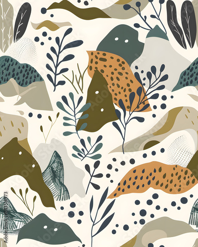 © Oksana_Latysheva, Naklejka premium Seamless pattern of abstract Scandinavian art print with blend organic shapes and elements