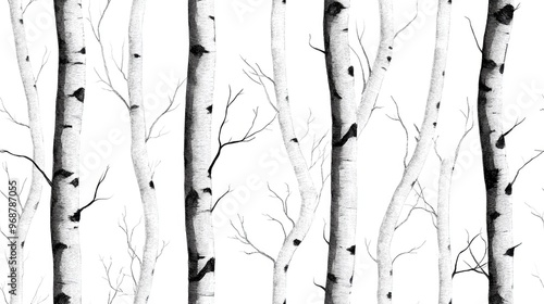 © NeuralNiche, Fototapeta premium Seamless pattern of black and white dead birch or aspen trees in winter background
