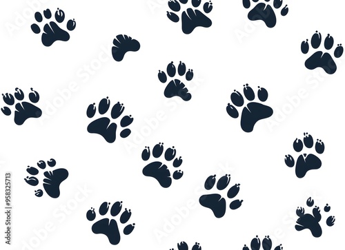 © Sagar, Obraz premium Seamless pattern of black dog paw prints on a white background