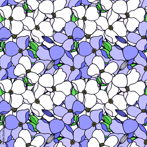 © Yevheniia, Fototapeta premium Seamless pattern of blossoming apple tree branches. Vector stock illustration eps10.