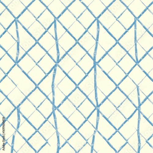 © Jamil, Fototapeta premium Seamless Pattern of Blue Bamboo Design on Beige Background texture pale yellow crisscross repeating wallpaper textile fabric