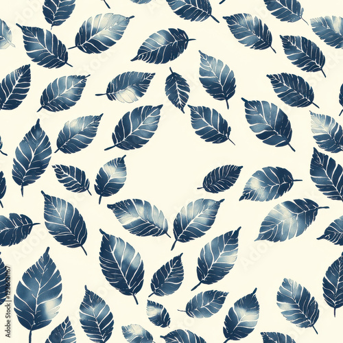 © SR.556, Fototapeta premium Seamless pattern of blue leaves on light background, creating calming effect