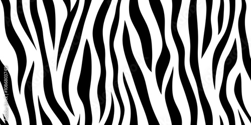 Fototapeta premium Seamless pattern of bold black and white zebra stripes, creating a minimalistic and stylish wildlife-inspired design for modern and creative projects..