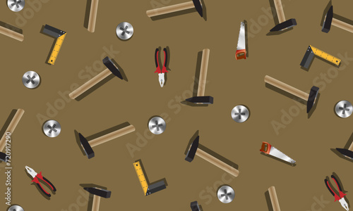 © wungkal, Fototapeta premium Seamless pattern of carpenter's tools. Hammers and screw.