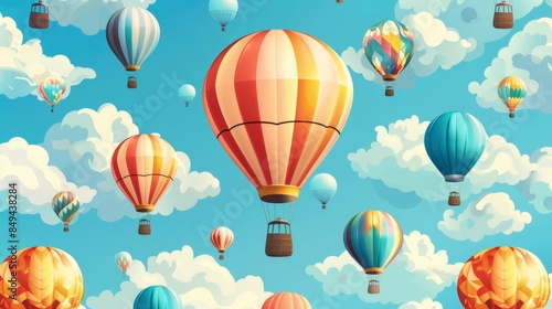 Fototapeta premium seamless pattern of colorful hot air balloons floating in the sky.