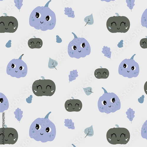 Fototapeta premium Seamless pattern of colorful pumpkins.Halloween vector seamless pattern,Seamless pattern for autumn season with pumpkin. Childish background for fabric, wrapping paper, textile, wallpaper and apparel.