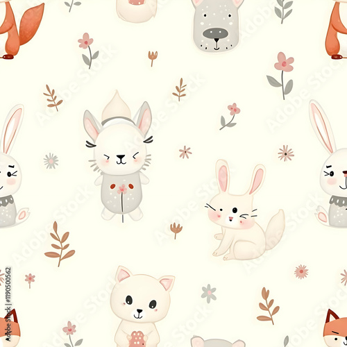 © sunnii, Fototapeta premium Seamless pattern of cute animal