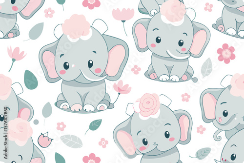 Obraz premium Seamless Pattern of Cute Baby Elephants with Playful Design Elements for...