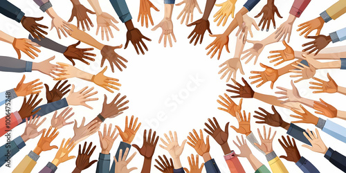 Fototapeta premium Seamless Pattern of Diverse Minimalist Hands in Various Skin Tones Forming a Supportive Circle: Unity and Diversity in Flat Vector Illustration