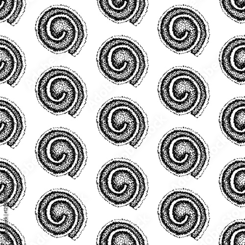 Obraz premium Seamless pattern of dots and spirals on a white background.