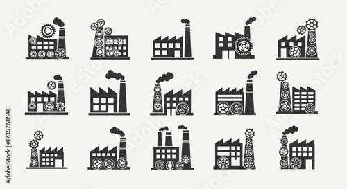 © Anak, Obraz premium Seamless Pattern of Industrial Factory Icons with Gears and Smoking Chimneys, Flat Vector Elements, Vector Illustration, Simple Vector, Stylized Vector Drawing, Vector Template, Clean Vector Style,