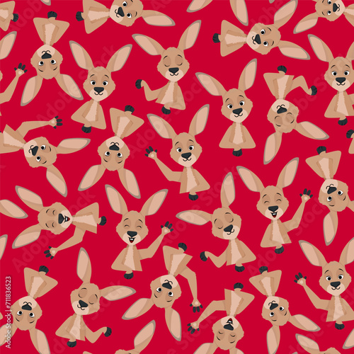 Fototapeta premium Seamless pattern of kangaroos on a red background