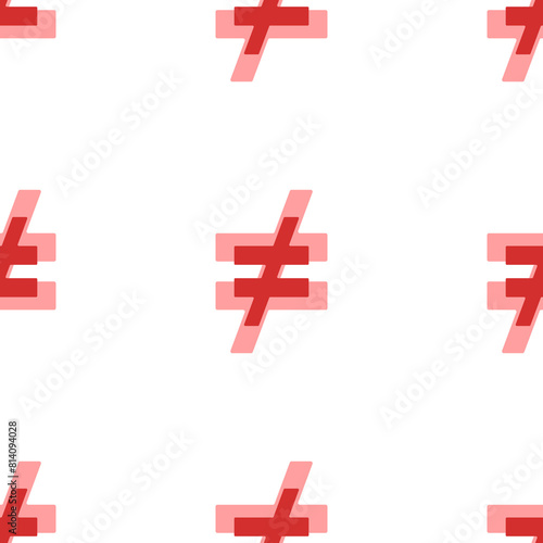 © Alexey, Obraz premium Seamless pattern of large isolated red not equal symbols. The elements are evenly spaced. Illustration on light red background