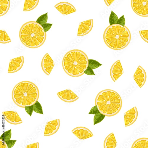 Fototapeta premium Seamless pattern of lemons and slices