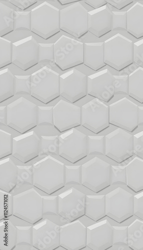 © Sergey, Naklejka premium Seamless pattern of light gray geometric hexagonal shapes on grey background. Abstract and modern high resolution full frame background with repeating pattern,