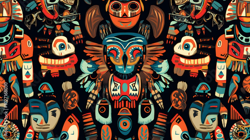 Fototapeta premium Seamless pattern of native cultural elements for vibrant and creative prints -