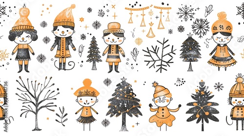 Naklejka premium Seamless pattern of Nutcracker soldiers, ballerinas, and mice in a whimsical...