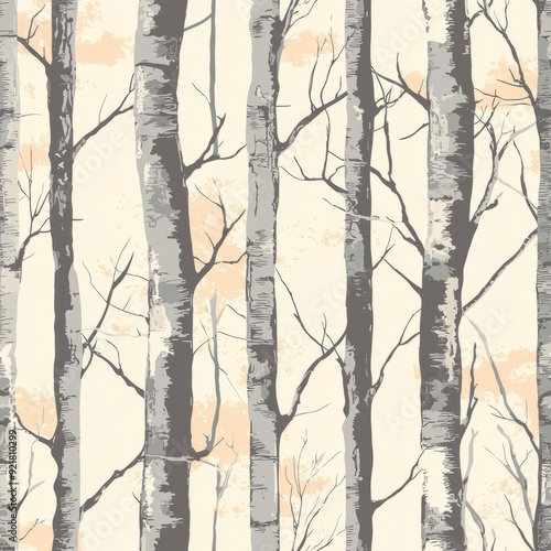 © fahmy, Fototapeta premium Seamless pattern of pastel birch trees with subtle greys and light beiges