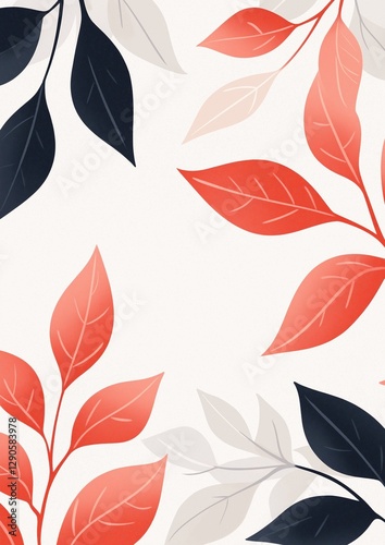 © CYBERPINK, Obraz premium Seamless pattern of red and black leaves on a white background. the leaves are arranged in a repeating pattern, with each leaf having a different shape and size.
