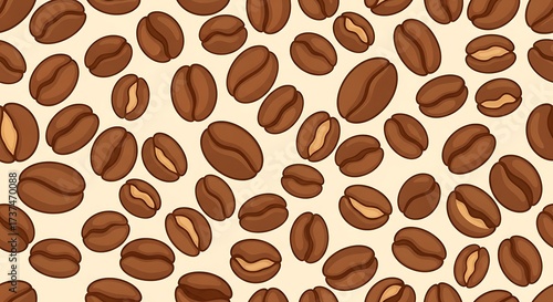© weko, Fototapeta premium Seamless pattern of roasted coffee beans on a light background.