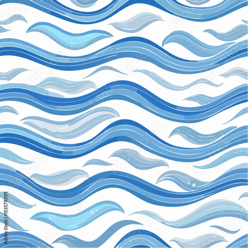 Fototapeta premium Seamless Pattern of Stylized Blue Ocean Waves Flowing with Depth and Movement on White Background Beautiful Nautical Design