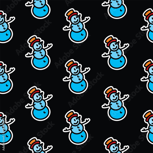 © artmarsa, Naklejka premium Seamless pattern. Original vector illustration. The icon of a kind snowman in a top hat.