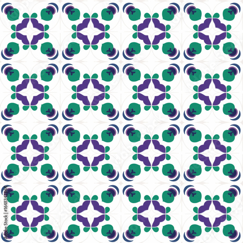 © Geekminds, Fototapeta premium Seamless pattern Peranakan geometric flowers green purple clean