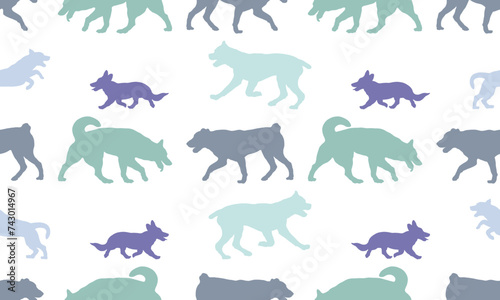 Fototapeta premium Seamless pattern. Silhouette dogs different breeds in various poses. Isolated...