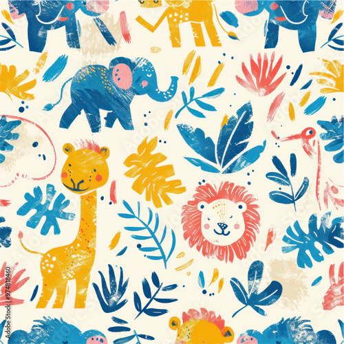Obraz premium Seamless pattern, tile, endless pattern for fabric, background, apparel, packaging. Children's theme, watercolor drawings of children.