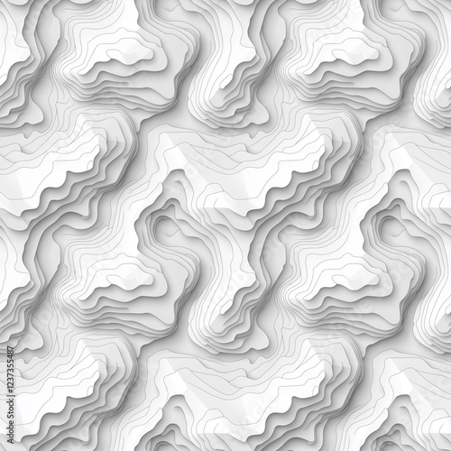 © NEXT MODEL, Fototapeta premium Seamless pattern, topographic illustration. White paper cut decoration textured with wavy layers 3d topography relief background.