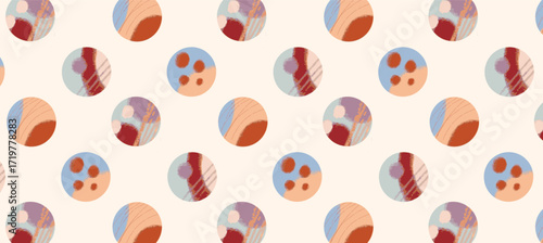 Fototapeta premium Seamless Pattern with Abstract Hand Drawn Circles. Soft Muted Earth Tones,...