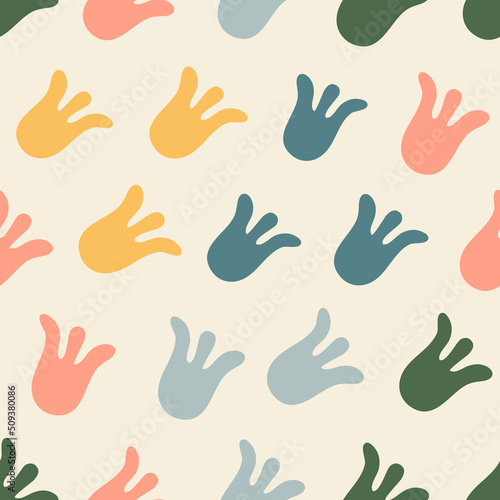 © Dariiya, Obraz premium Seamless pattern with abstract shapes. Simple colored doodles